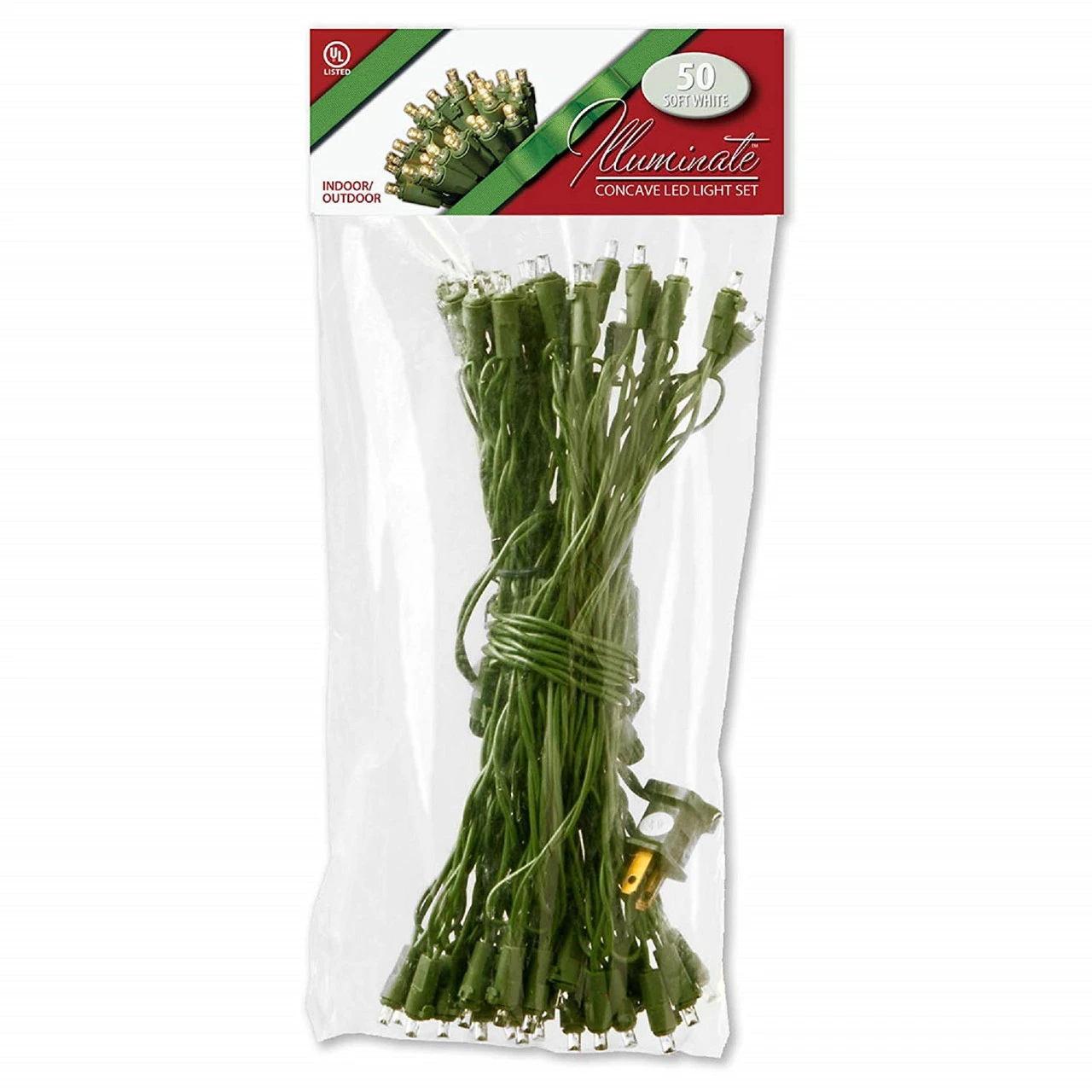 Ideal for either indoor or outdoor use, this 50-bulb warm white LED mini-light set has 9 inch spacing between bulbs. For indoor or outdoor display. this set does not have an end connecting plug. This set features concave LED bulbs that are energy-efficient and long-lasting.