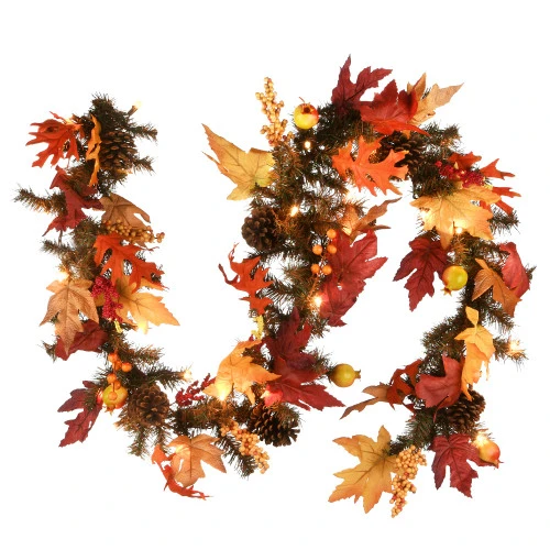 - Glows with miniature lights in festive maple harvest leaves