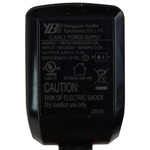 Requires a DC 4.5V and 200mA indoor adapter – included
