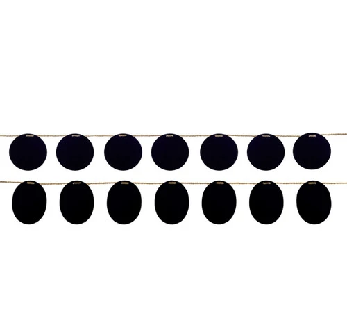 - Each string has 7 chalkboard plaques strung on a jute rope