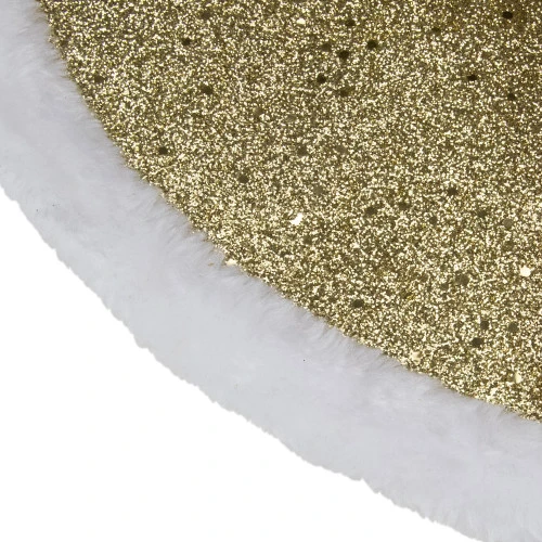 - Features a white faux fur trim with 2 hook and loop fastener fasteners for stability under your tree