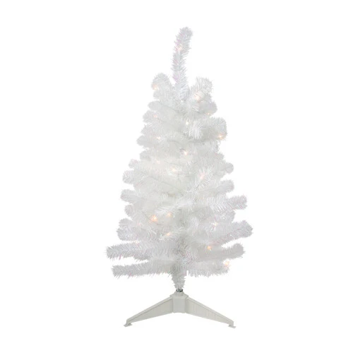 Northlight 3′ Pre-Lit Slim White Iridescent Tinsel Artificial Christmas Tree- Clear Lights