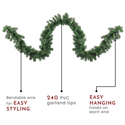 - Garland measures 9 feet long by 12 inches wide