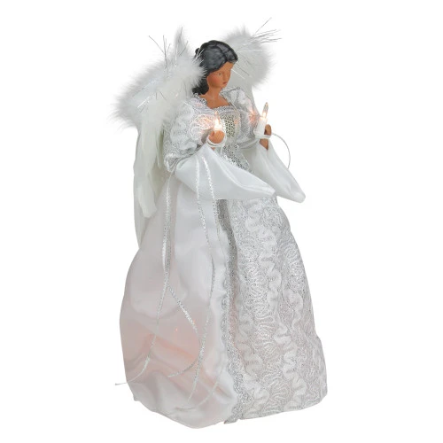 - Embellished With Silver Patterns; Angel Wearing A White And Silver Dress