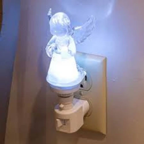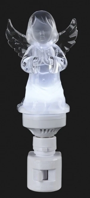 - Peaceful frosted angel lit from within by a bright LED bulb