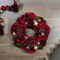 Northlight Red Stars And Pine Cone Artificial Christmas Wreath – 12.5-Inch, Unlit