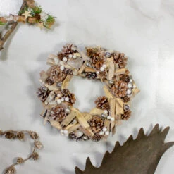 Northlight White Driftwood And Pine Cone Artificial Christmas Wreath – 13-Inch Unlit