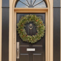 24″ Pre-Lit Canadian Pine Artificial Christmas Wreath – Multi-Color Lights